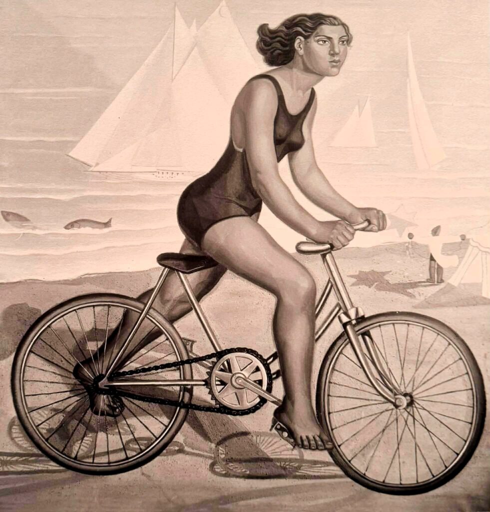 Para os autorretratos, que fez em décadas distintas da sua vida, Maruja Mallo privilegiou a máquina fotográfica. Os que vi não me causaram assombro de índole estética, valiam pelo seu significado. Mallo não era bonita, mas era convencida (no sentido positivo do termo), ousada, livre, não tinha vergonha de se mostrar. Não só desenhou a mulher enquanto ser ativo e emancipado — vide o que escrevi a propósito de Estampas —, também se deu a ver, irreverente como era no quotidiano. Se hoje a selfie oca e indicativa de vazio é comum, ali havia um sentido e um recado: Mallo era dona do seu corpo e da sua cabeça, eles não pertenciam a mais ninguém. Caso a letra d’O Navio Dela, de Manel Cruz, fosse deslocada para trás no tempo, com acerto seria inscrita na tez da artista.