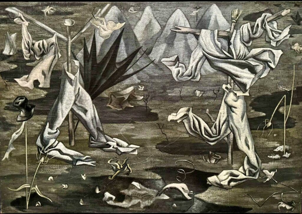 Não apreciei as telas que faziam parte de Cloacas e campanarios (1929‑1932). O conceito que lhes dá forma é interessante e denuncia a costela surrealista de Maruja Mallo: ossadas, fósseis, detritos e figuras fantasmáticas em cenários desolados servem para presentificar a ordem burguesa a fim de sugerir a necessidade de a superar. No entanto, do ponto de vista estético, esse universo sombrio não é ma tasse de thé.
