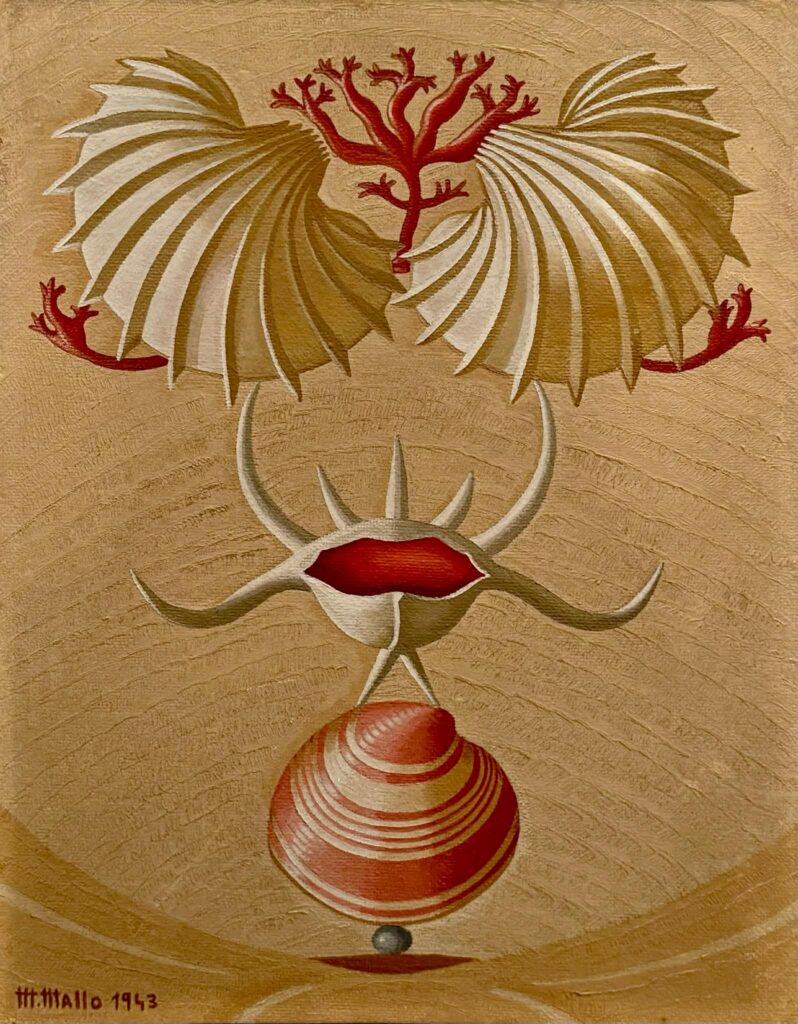 Durante o exílio na América do Sul, Maruja Mallo tomou‑se de encanto pelas águas do Pacífico e trouxe para as suas composições aquilo que lá viu (algas, estrelas‑do‑mar, anémonas‑do‑mar, conchas…), por vezes associando‑o a flores, sobretudo rosas e orquídeas. Submetendo o conjunto a uma arrumação ditada por critérios geométricos, criou peças de pendor erótico evocativas do sistema reprodutor feminino, fonte de vida. Agrupou‑as em Naturalezas vivas (1941‑1944).
