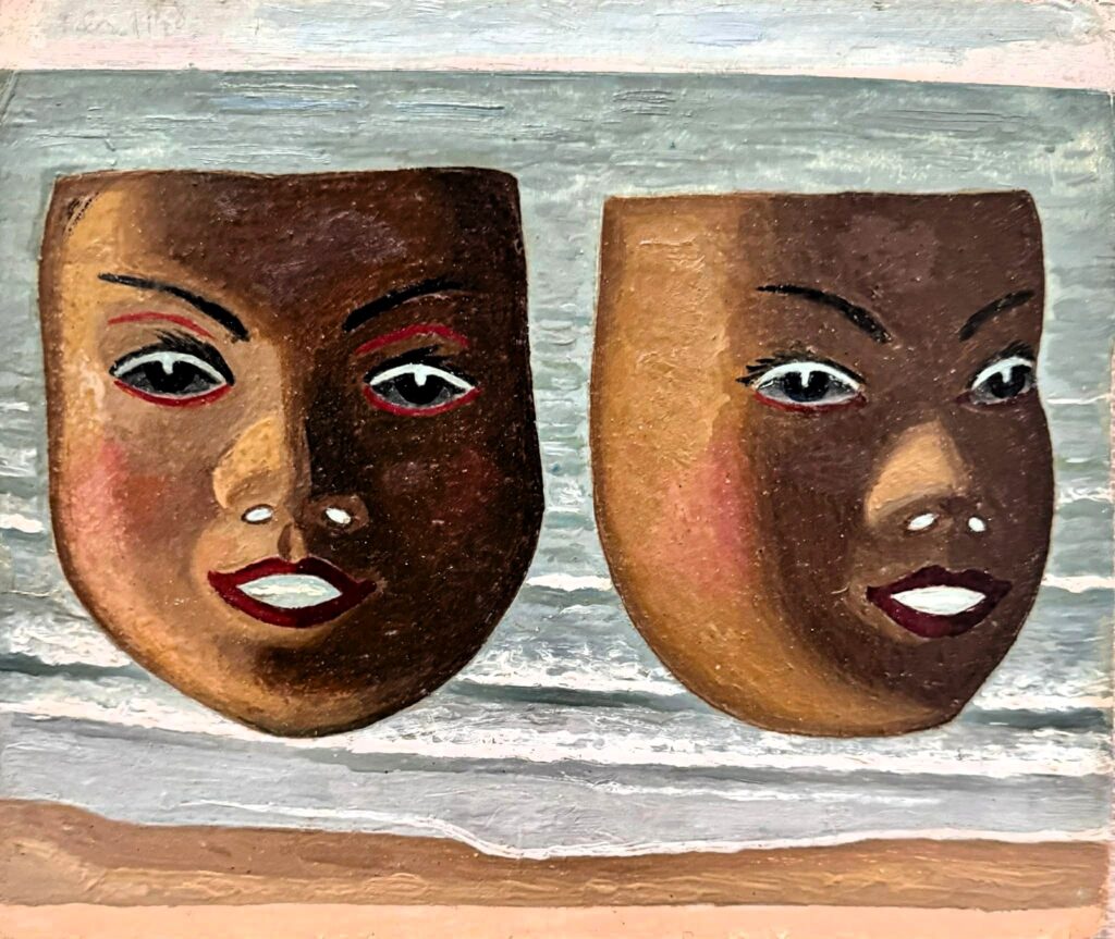 Não gostei da plástica das Máscaras (1948‑1957), algumas caem para o grotesco. Trata‑se de um conjunto no qual falta naturalismo e sobra simbologia: a máscara — a mudança e a nova identidade que ela supõe — recorda a experiência do exílio, que Mallo sentiu na pele e na alma.