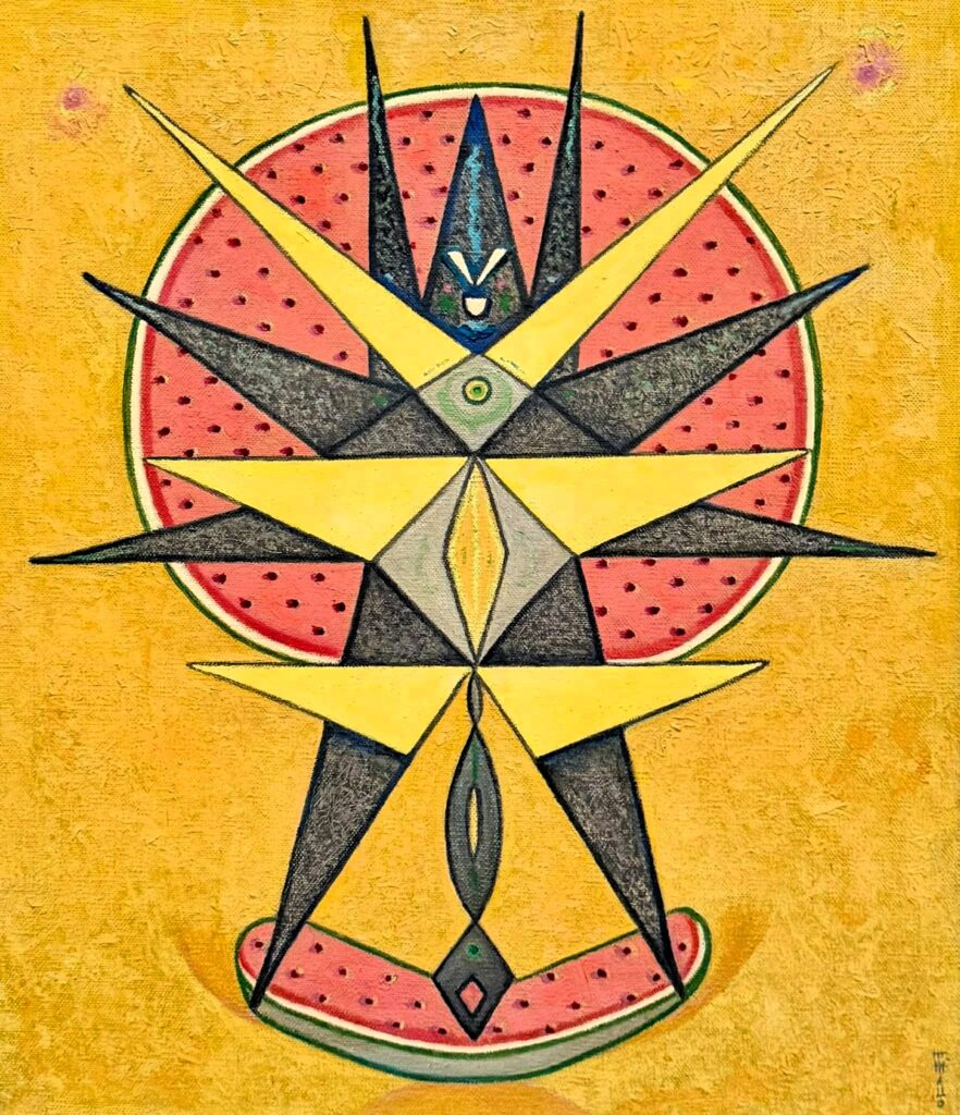 Achei estranhos os quadros do globo formado por Moradores del vacío (1968‑1980), Viajeros del éter (1982) e Protoesquemas (1968‑1972). Mallo inspirou‑se em saberes esotéricos, na ficção científica, na aventura espacial, na mitologia, multiplicou o emprego de formas geométricas, criou figuras afastadas do real.