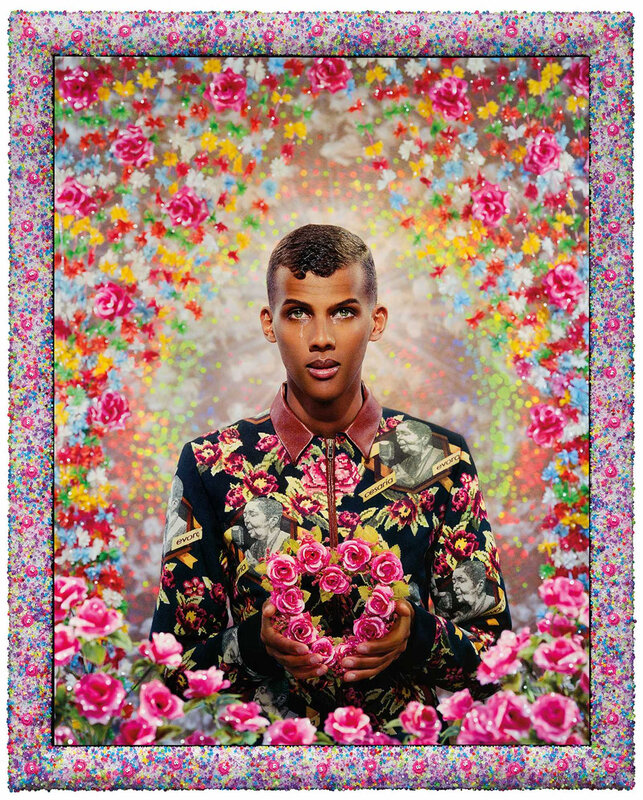 Na arte que não desejo ter em casa, posso apreciar o kitsch. Numa tela, Pierre e Gilles (fotógrafo e pintor, respetivamente) imprimiram a fotografia de Stromae e pintaram‑na com rosas e outros motivos, dessa forma criando For Ever (Paul Stromae), um quadro rico de cor. A imagem do artista ficou dentro de uma mandorla, à guisa de Cristo. Os seus olhos vertem lágrimas. Ele segura um coração de rosas e traja uma camisa garrida em que se destacam flores, o nome e retratos de Cesária Évora. Eis um conjunto camp, chamativo, que concorre para forjar o estatuto de ícone de Stromae.