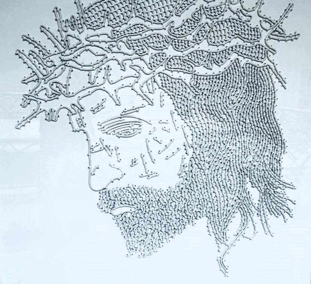 Em Présumé innocent, de Mounir Fatmi, cabos coaxiais cravados numa prancha de madeira compõem um perfil da cabeça de Cristo (com a coroa de espinhos). Os cabos, mercê do papel que têm ou tiveram na obsidiante sociedade da informação, logo nos transplantam para a era moderna. E o título atrai o travor do nosso tempo, das redes sociais, dos blogues e dos meios de comunicação social que optaram pela presunção da culpa e exaltam justiceiros e populistas como ídolos dos dias que correm.